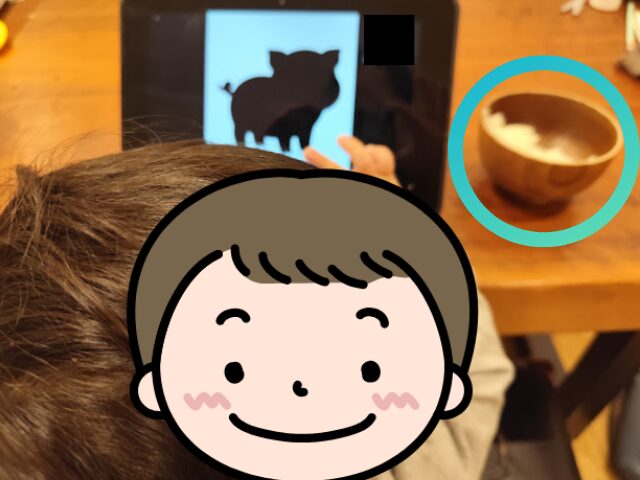 また、元気な子なので、楽しいと騒いでしまうので、カメラ・マイクをオフにし、注意したり、落ち着かせていました。